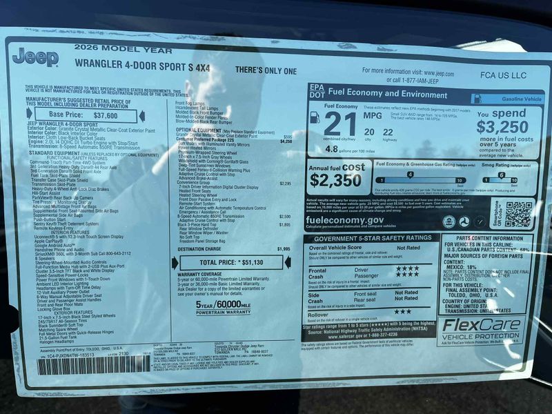 New 2026 Jeep Wrangler Unlimited Wrangler 4-door Sport S