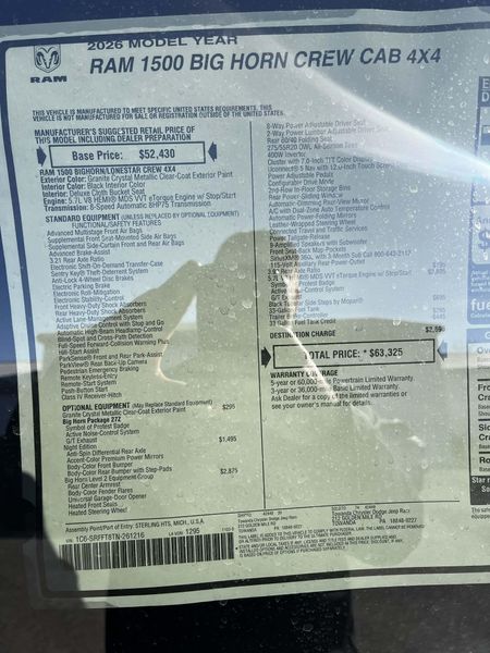 New 2026 RAM 1500 Big Horn Crew Cab 4x4 5'7' Box